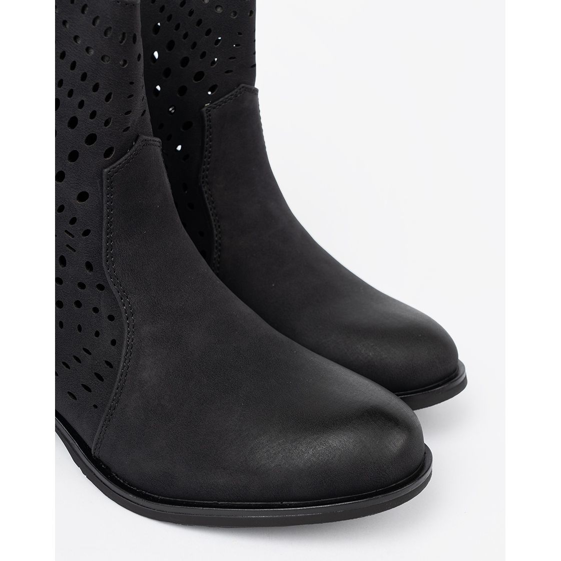 A 3 cm -es sarokmagassággal ezek a csizmák biztosítják a stabilitást és a kényelmet, és a felső rész szélessége 26 cm -vel egyenlő, és tökéletesen alkalmazkodik bármely lábhoz. Ezenkívül a belső szövet anyag megfelelő szellőzést biztosít.