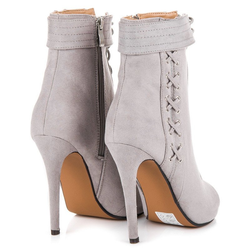 Fedezze fel az eleganciát minden alkalomra a Seastar nyitott orrú fűzős bokacsizmáival. Ez a szürke bokacsizma tökéletes választás a modern nők számára, akik értékelik a stílust és a kényelmet. Kiváló minőségű ökológiai velúrbőrből készültek, remekül mutatnak a lábszáron, így vékonyak és elegánsak.