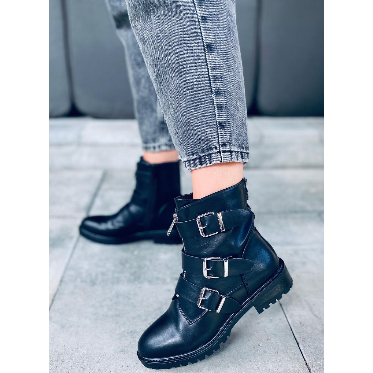 Az Oklahoma Black egy lapos sarkú modell, melynek magassága mindössze 3,5 cm, így hosszú viselés esetén is rendkívül kényelmesek. A boka magassága stabilitást ad, és kiemeli a cipő katonai jellegét.