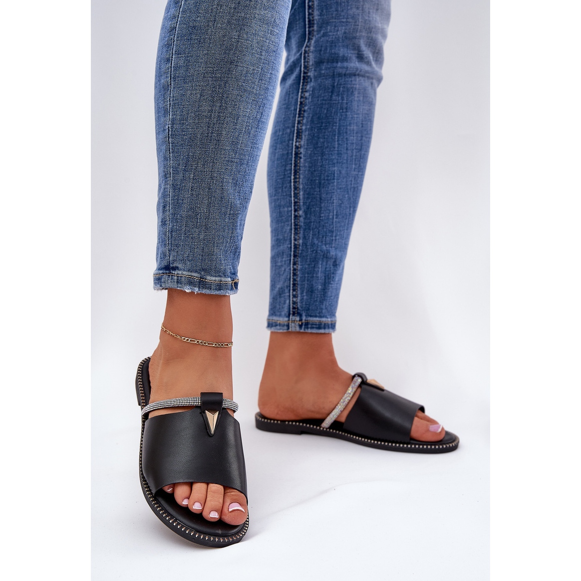 Fedezze fel az eleganciát és a kényelmet az öko bőr lapos szárnyas szárnyakkal, amelyek kiváló választás a meleg napokra. Ezeket a klasszikus fekete színű stílusos flip -flopokat egy cirkonokkal rendelkező dekoratív csík különbözteti meg, így különleges fényt ad nekik. Különböző alkalmakkor tökéletes, minden nap és elegánsabb kijárat során is működnek.