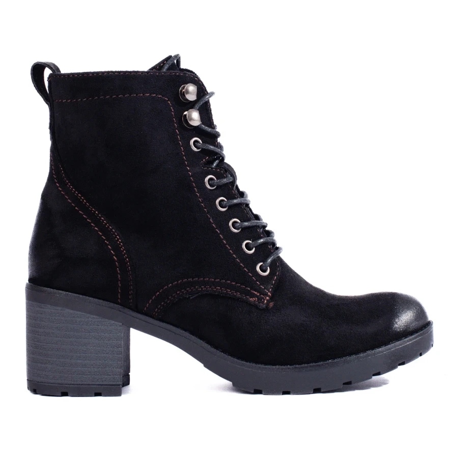 W. Potocki W. Potocki Ökológiai velúrból készült fűzős női Potocki magas sarkú csizma fekete
