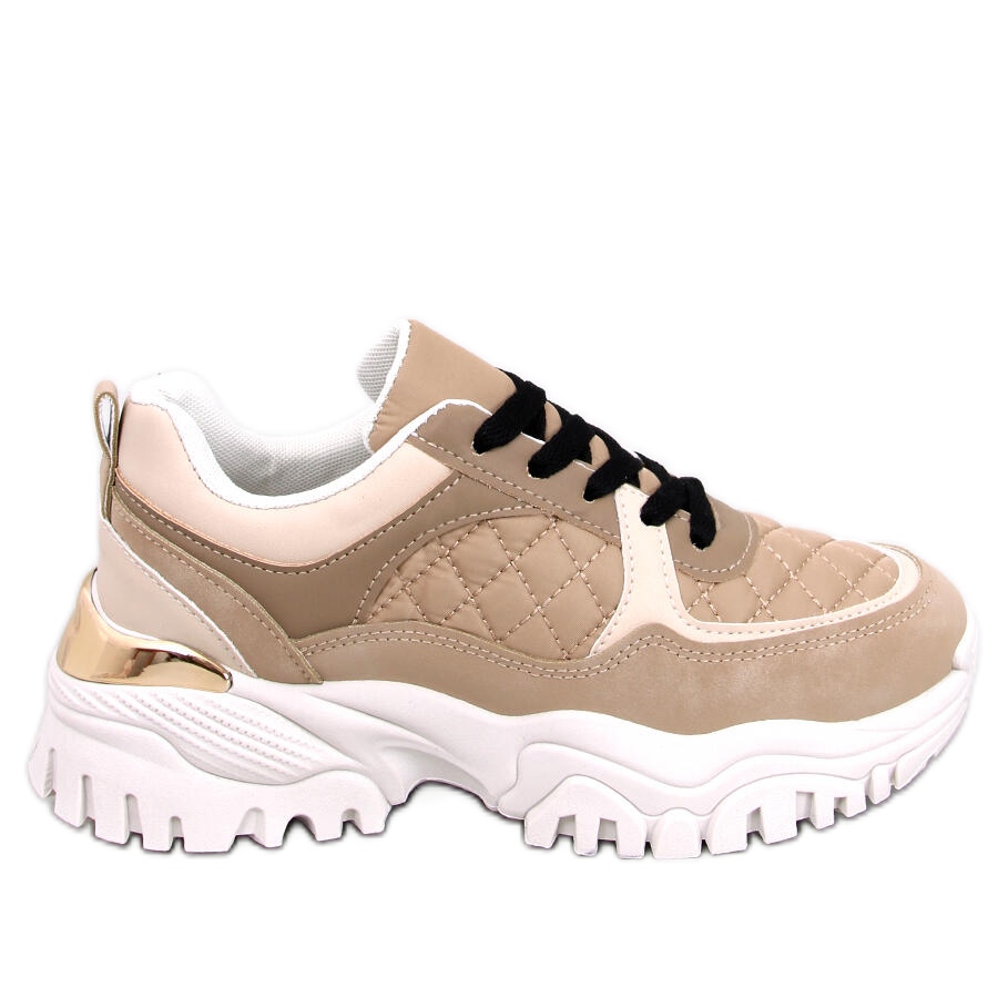 A tornacipők belseje szövettel van bélelve, ami további kényelmet biztosít a viseletnek. Kényelmes, 5,5 cm magas emelvénnyel felszereltek, nemcsak vizuálisan meghosszabbítják a lábakat, hanem egész napos használat során is kényelmet garantálnak. A fehér talp ellentétben áll a cipő bézs színével, frissességet és könnyedséget kölcsönöz nekik.