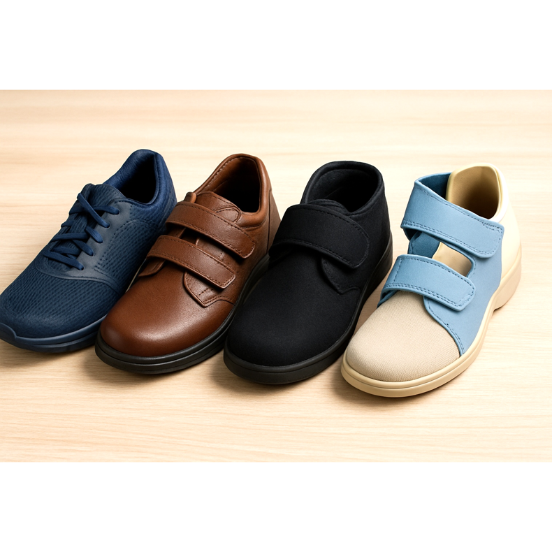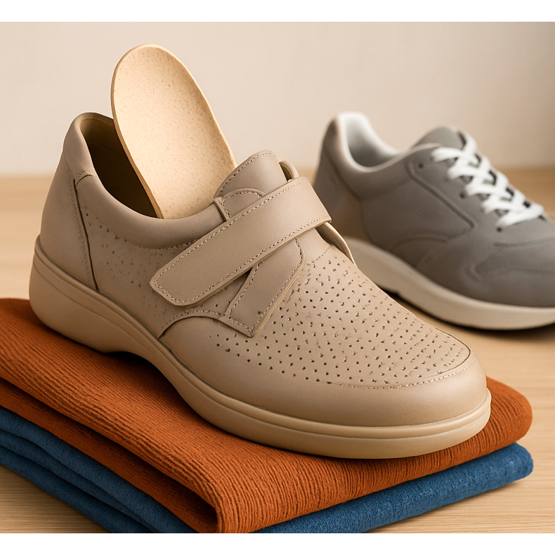 Speciális lábbeli nagyon puha béléssel, belső varrás nélkül, széles felsőrésszel és állítható rögzítéssel. Megvédik az érzékeny bőrt a sérülésektől, és lehetővé teszik speciális betétek használatát. Légáteresztő anyagokból készült, amelyek megakadályozzák a nedvesség felhalmozódását.