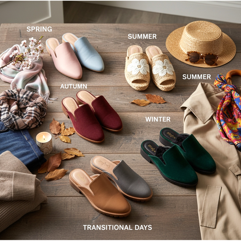 Az öszvérek az év nagy részében viselhetők, anyagukat és stílusukat az időjáráshoz és alkalomhoz igazítva.