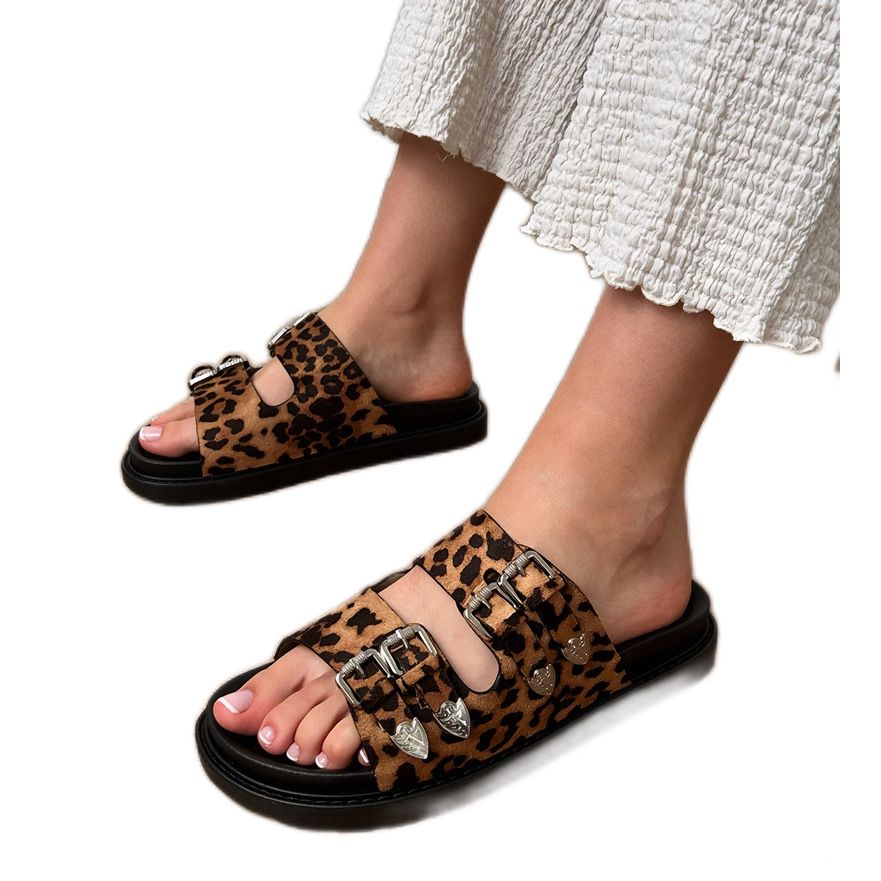 Bemutatjuk a leopárd női papucsot dekoratív bézs bilincsekkel - ez a kiváló választás azoknak a nőknek, akik mind a stílust, mind a kényelmet értékelik. Ezeket a klasszikus flip -flopokat egy divatos állati mintázat különbözteti meg, amely karaktert ad, és jól illeszkedik a legújabb trendekhez.