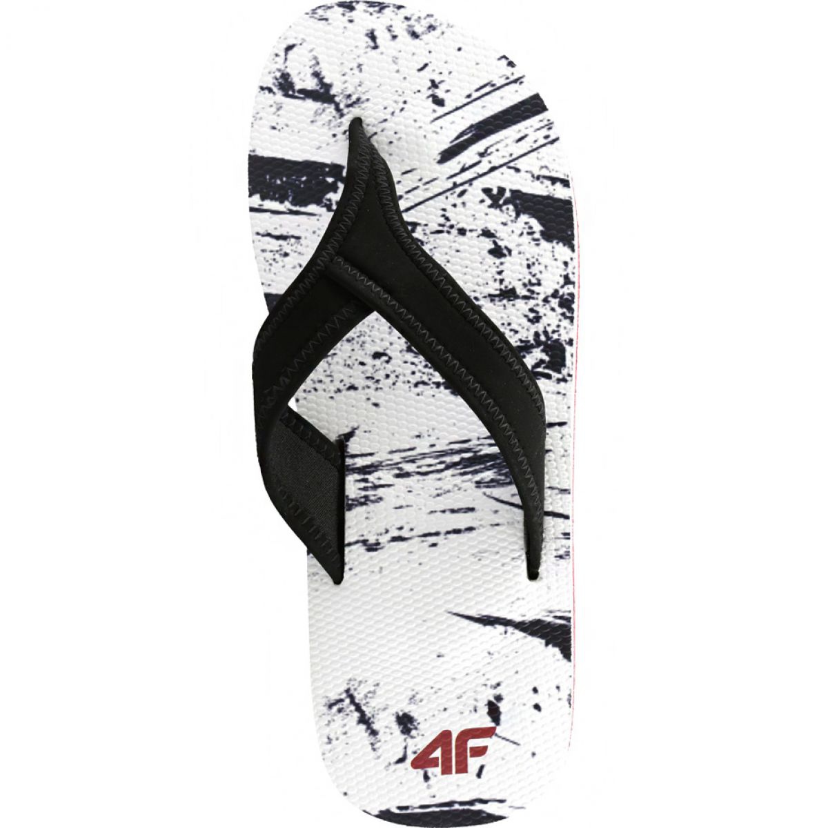 A 4F H4L19 KLM004 90A flip-flop tökéletes választás azoknak a férfiaknak, akiknek fontos a kényelem és a stílus a nyári napokon. Ezek a fehér, fekete és tarka színben kapható modern papucsok tökéletesen illeszkednek minden hétköznapi stílushoz. Minták nélküli minimalista kialakításuk univerzálissá és vonzóvá teszi minden férfi számára.