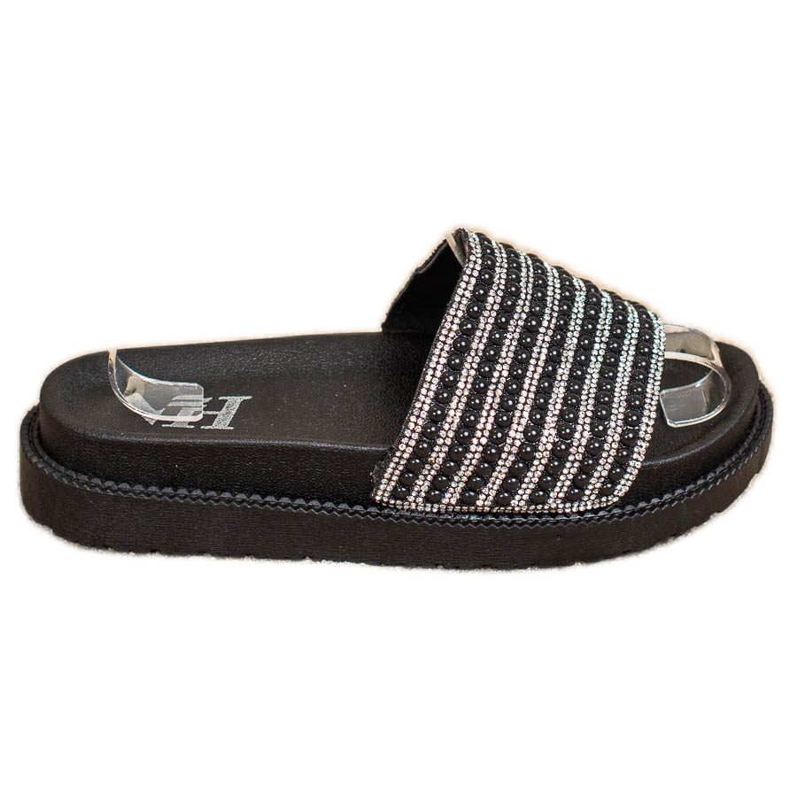 Részletek: SHELOVET Papucs a platformon köbös cirkónium -dioxiddal fekete