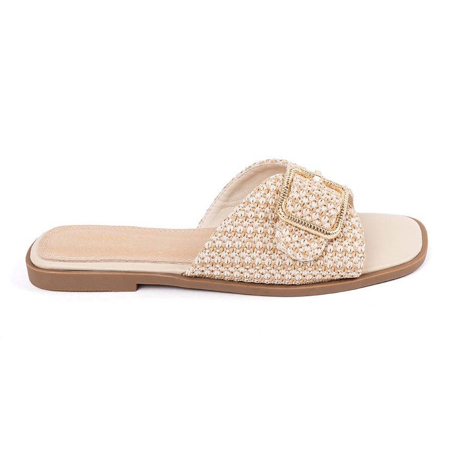 Részletek: Goodin Papucs bézs és fehér rácsban, csatával