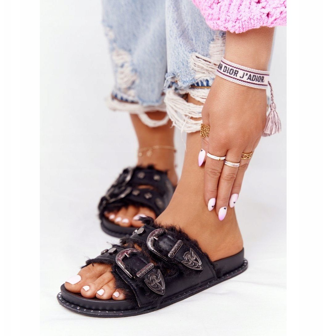 Részletek: PS1 Papucs csatokkal és szőrmével, fekete Lydia