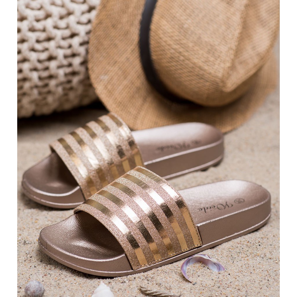 Fedezze fel a nyári eleganciát a sárga csillámos Weide papucsokkal! Ezek a divatos papucsok a stílus és a kényelem tökéletes kombinációja, olyan nők számára készültek, akik szeretnének kitűnni a meleg napokon. Fényes, csillogó anyaguk felhívja magára a figyelmet és fényt kölcsönöz minden stílusnak, ugyanakkor az alkalmi, hétköznapi ruhákhoz passzolnak.