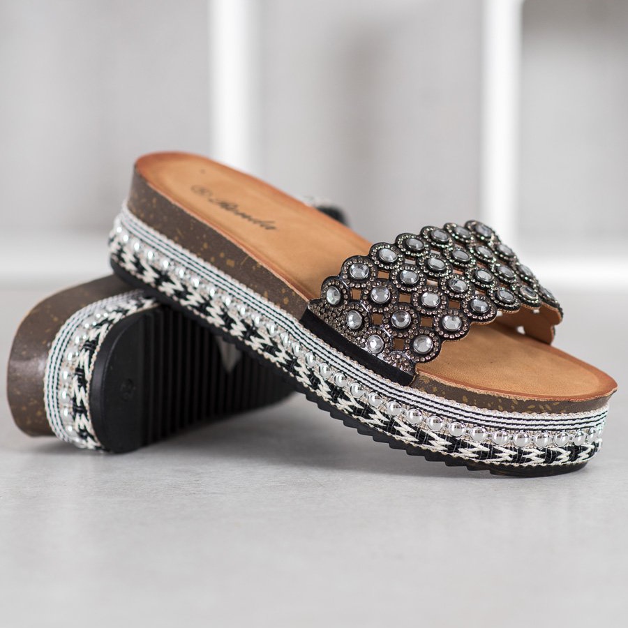 Részletek: Renda Papucs díszekkel a platformon fekete