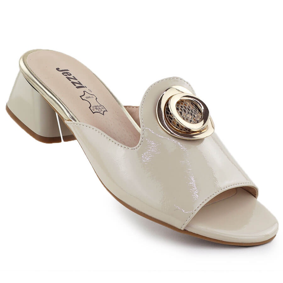 A papucsot egy elegáns, bézs árnyalat jellemzi, amely tökéletesen illeszkedik a jelenlegi trendekhez. Az ökológiai bőrből készült belső bélés és a természetes betétes garantáló kényelem, és a Slip -up vágás lehetővé teszi, hogy gyorsan felhelyezze és letöltse. A sarok magassága 4,5 cm, ami lehetővé teszi az ábra finom emelését anélkül, hogy feladná a kényelmet.