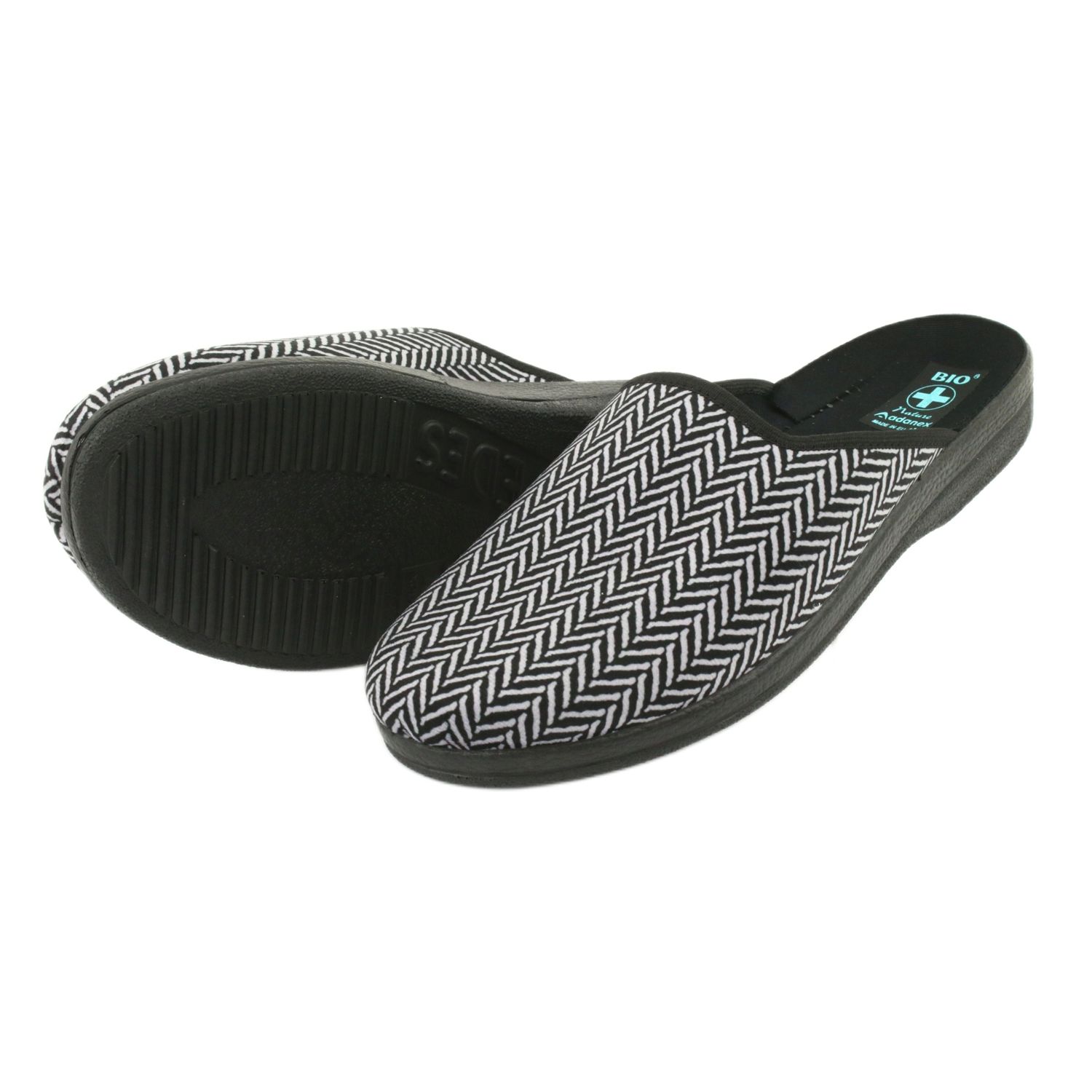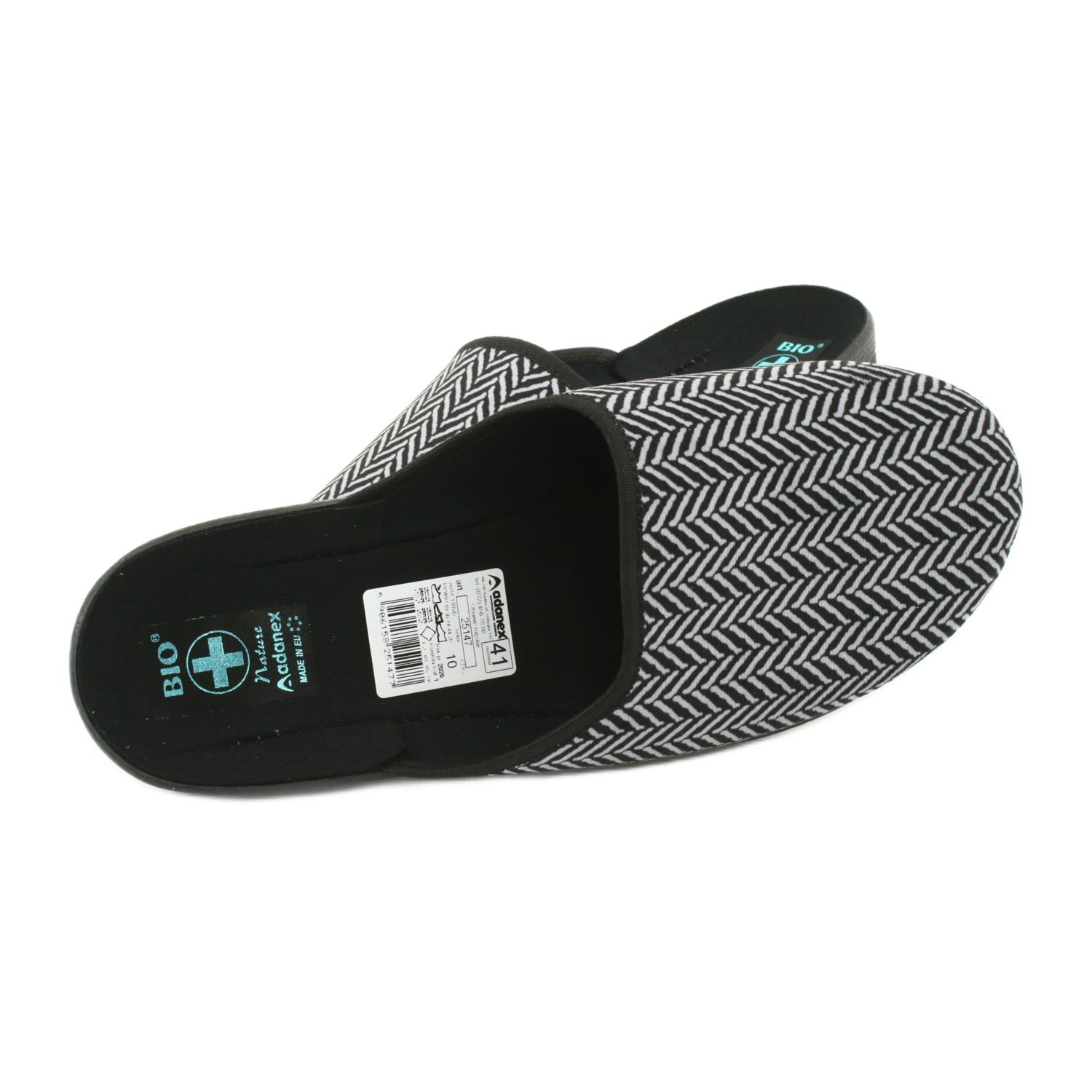 Az Adanex lengyel márkanév elegáns férfi papucsai, amelyek puha velúrból készültek, finom heringbone -val, fekete és szürke árnyalatban. A profilozott, vastagabb PU hab -talp biztosítja a könnyedséget és a párnázást, annak köszönhetően, hogy a ház körüli séta kényelmesebb és kevésbé terjedelmes az ízületek számára. A beillesztett szerkezet megkönnyíti a gyors feltételezést, és a lélegző anyagok gondoskodnak a lábak termikus kényelme miatt.