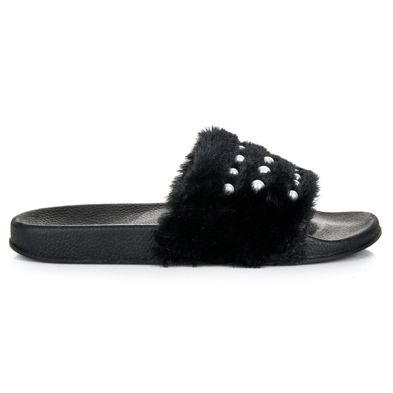 Részletek: Papucs szőrmével és gyöngyökkel fekete