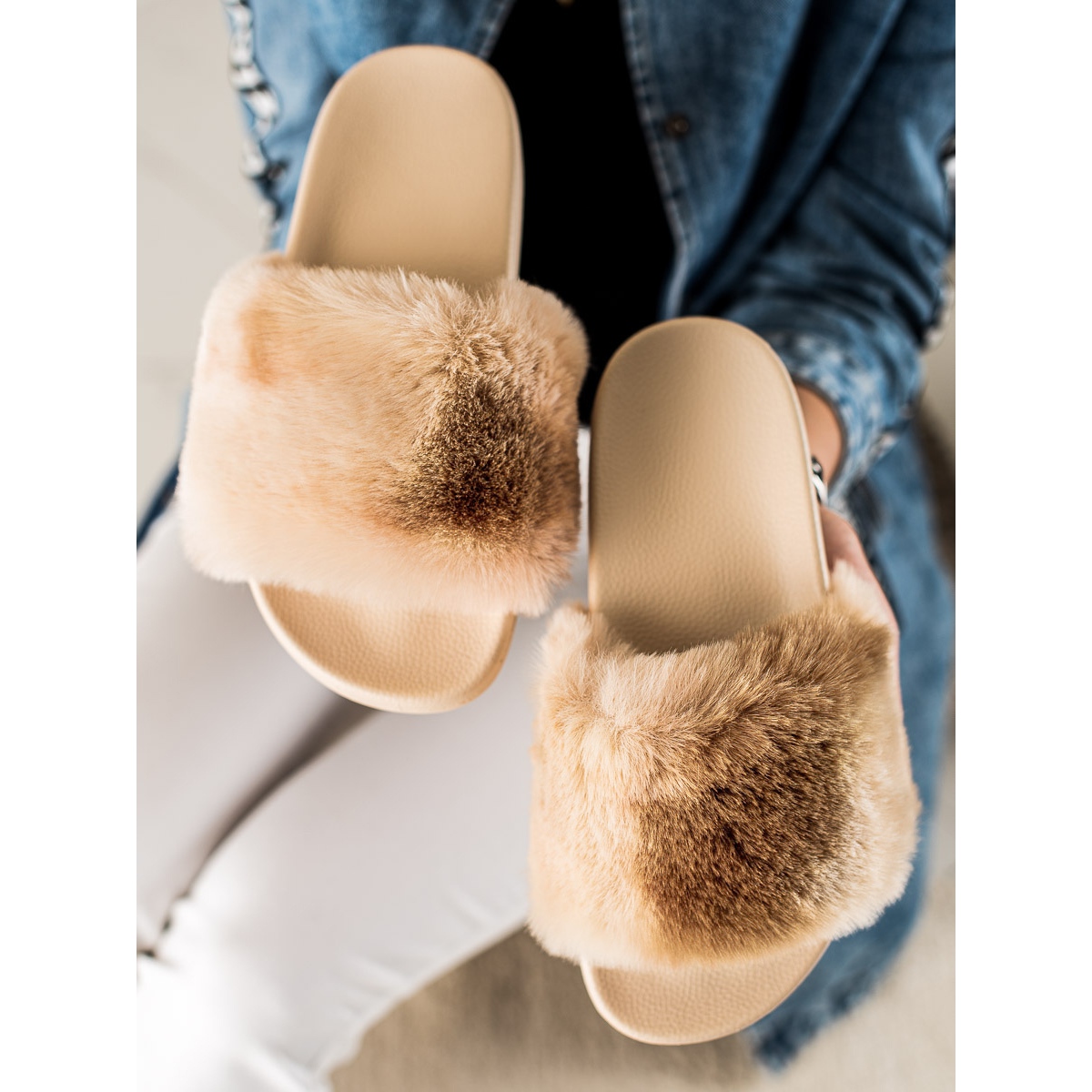 Részletek: TRENDI Papucs szőrmével bézs barna