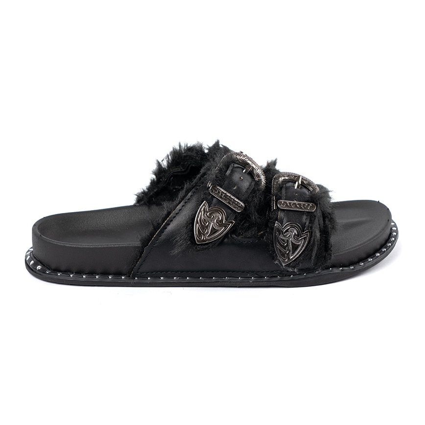Shelvt Shelvt Papucs szőrrel és csatokkal fekete