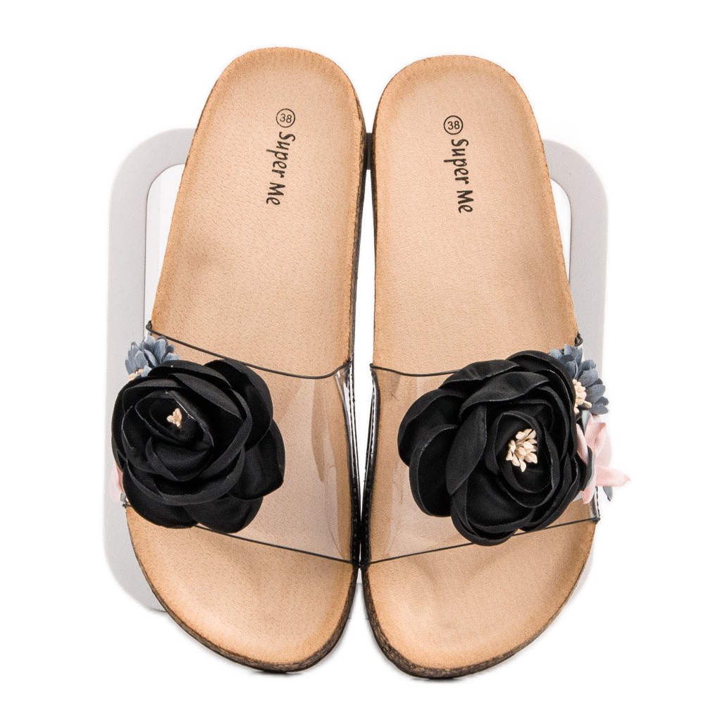 Super Me Super Me Papucs virágokkal fekete sokszínű