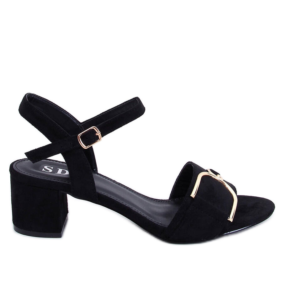 Az állítható rögzítőelem egy csat formájában finoman hangsúlyozza a bokát, hozzáadva az összes stílust. Ökológiai velúrból készült szandálok egyesítik a divatos megjelenést az ökológiai megközelítéssel. A klasszikus fekete szín természetesen illeszkedik bármilyen stilizáláshoz, és az arany díszítés ízléses részlet, amely ezeket a szandált tökéletessé teszi mind a napi kirándulásokhoz, mind a különleges alkalmakhoz.