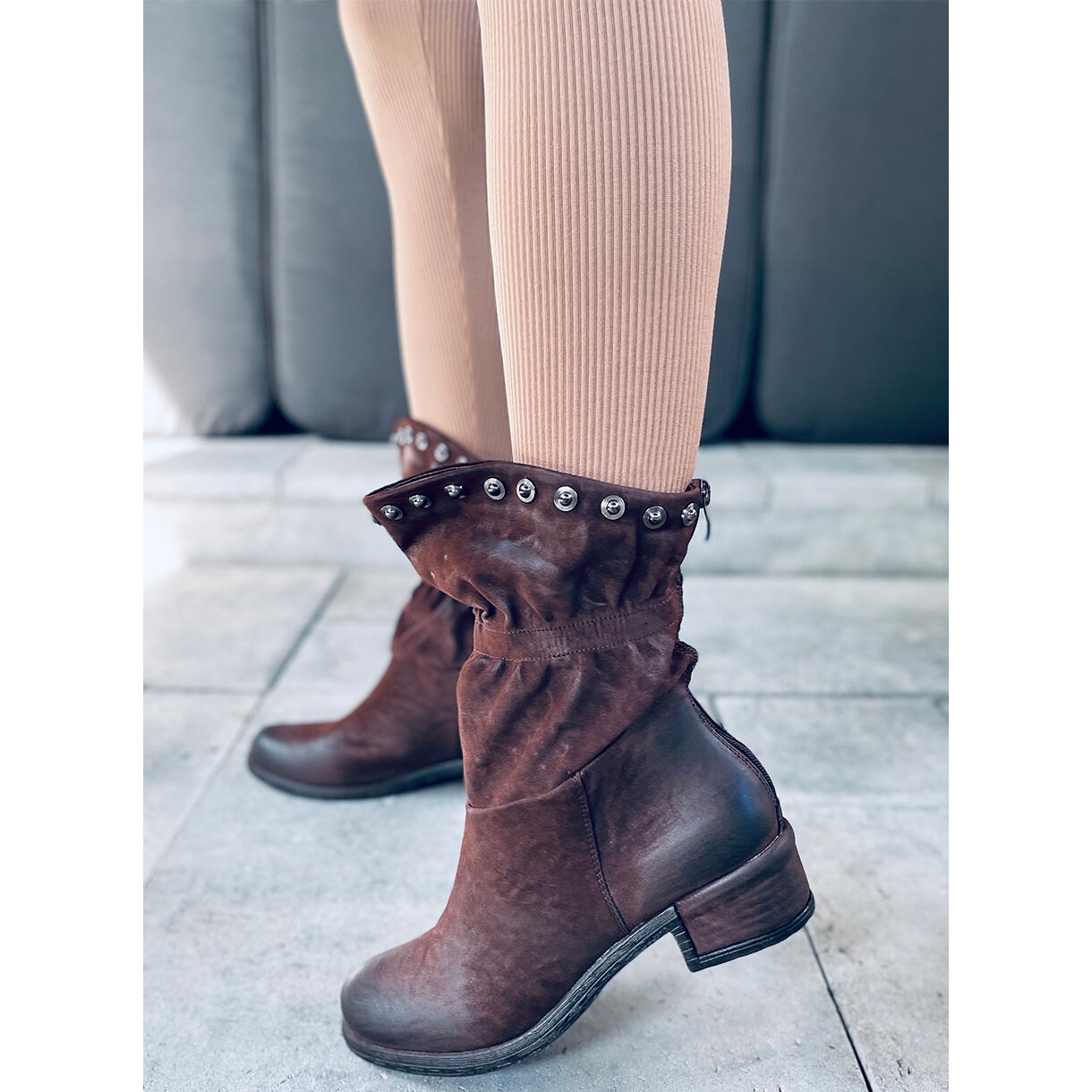 Fedezze fel az egyedi stílust és kényelmet a Parri Brown női bokacsizmával! Ez a széles, 4,5 cm-es sarkú katonai csizma tökéletes választás mindennapi használatra, a divatos dizájnt a funkcionalitással ötvözi. A finoman fodros és szemet gyönyörködtető szegecsekkel díszített felsőrész minden bizonnyal felkelti a figyelmet. A praktikus cipzár hátulján rendkívül egyszerűvé teszi a cipő fel- és levételét.