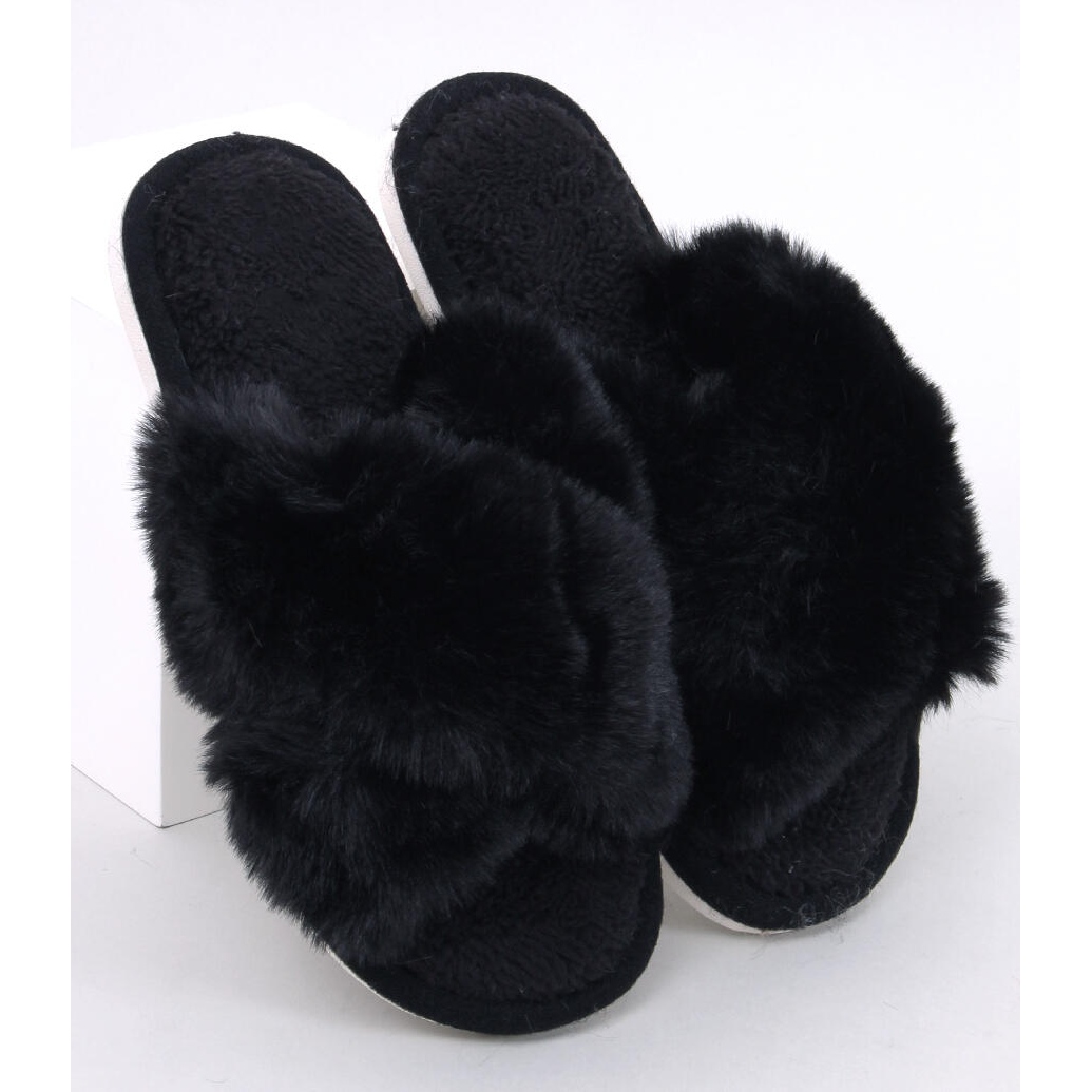 Parris szőrme papucsok - keresztezett csíkok, fekete