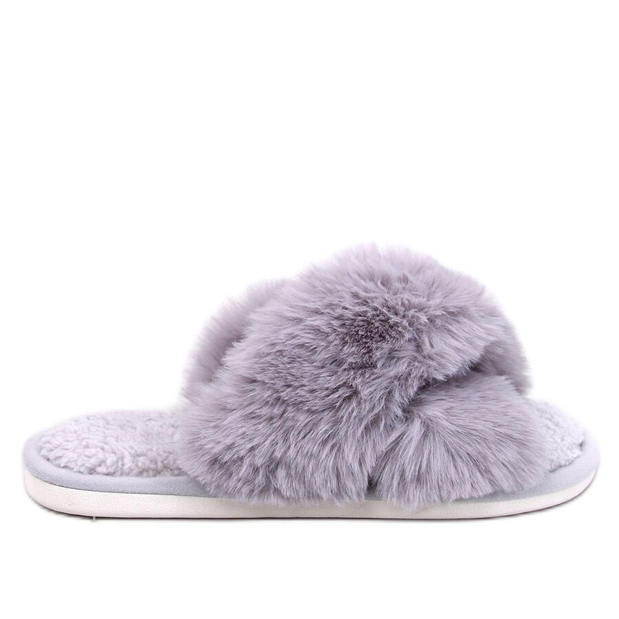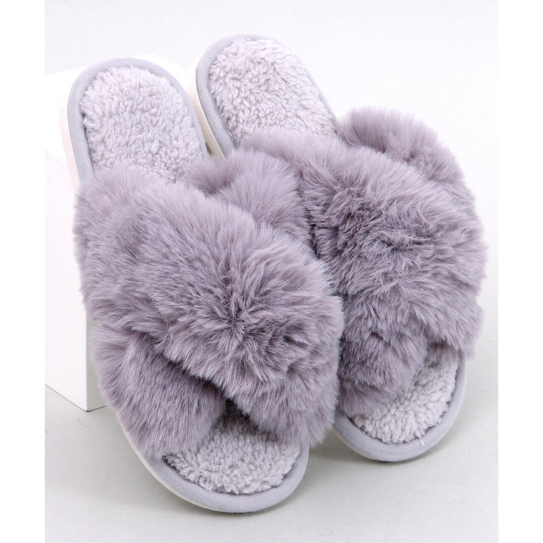 Inna marka Parris szürke prémes papucs keresztpánttal
