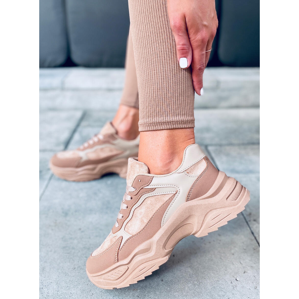 A Dalla modellt vastag, bézs színű talp jellemzi, amely nem csak karaktert ad, hanem optimális kényelmet biztosít a napi séták vagy intenzív edzés során. A kerek orr és a lapos sarok rendkívül kényelmessé teszik a cipőt, alacsony magasságuk pedig bármilyen helyzethez tökéletessé teszi - minden nap és sporttevékenység közben.