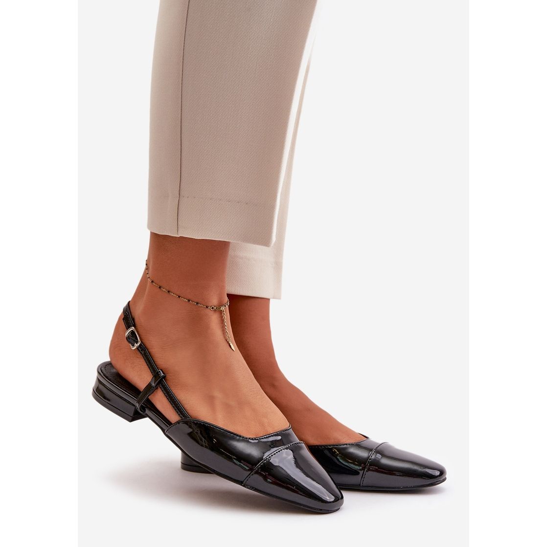 Részletek: Patent fekete Kairael alacsony sarkú balettlapos nyitott sarkú