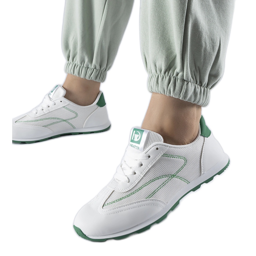 Ezeket a cipőket az alacsony sarokmagasság 1,5 cm jellemzi, ami minden alkalommal rendkívül kényelmessé teszi őket, mind a város körüli séták során, mind a barátokkal való találkozók során. A zöld akcentussal ellátott fehér cipő színei friss és modern megjelenést biztosítanak számukra, ideálisak a nyári stílushoz.