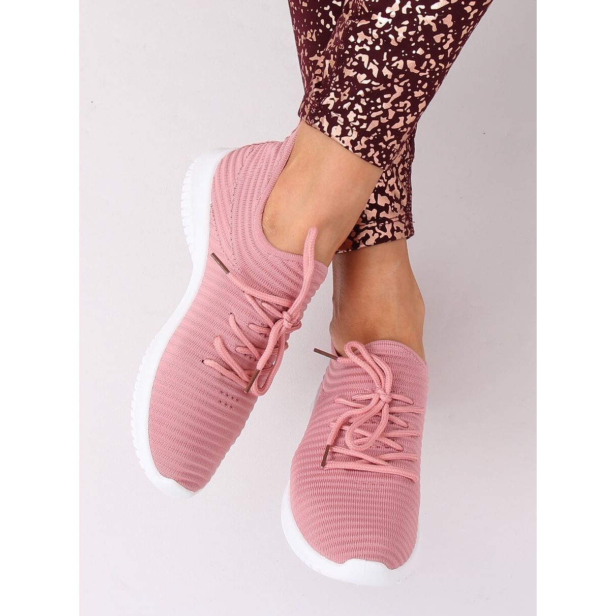 A cipők finom rózsaszín színben kaphatók, mely tökéletesen illeszkedik a legújabb sportdivat trendekbe. Sima mintájának és egyedi stílusának köszönhetően különféle stílusokhoz passzolnak – a leggingstől a tréningruháig, valamint az alkalmi szettekig.