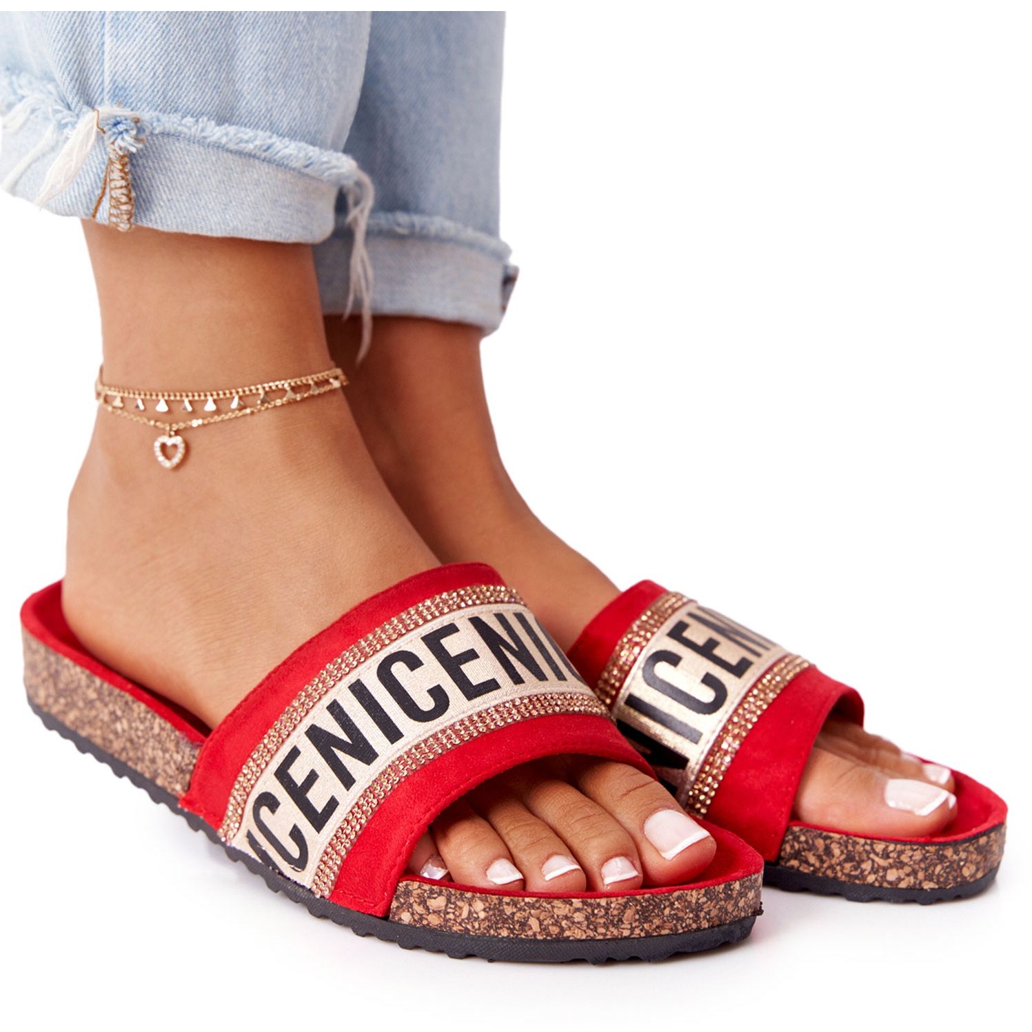 Részletek: Piros papucs parafán köbös cirkóniummal Legyen szép