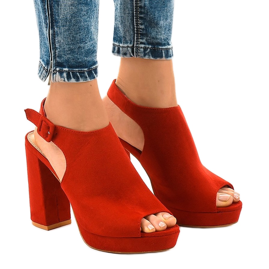 A nyitott orr és sarok könnyedséget kölcsönöz nekik, az oldalsó csatos rögzítés pedig nem csak funkcionálissá, de elegánssá is teszi őket. A csizmák piros színe szemet gyönyörködtető és tökéletesen illeszkedik az aktuális divatirányzatokba.
