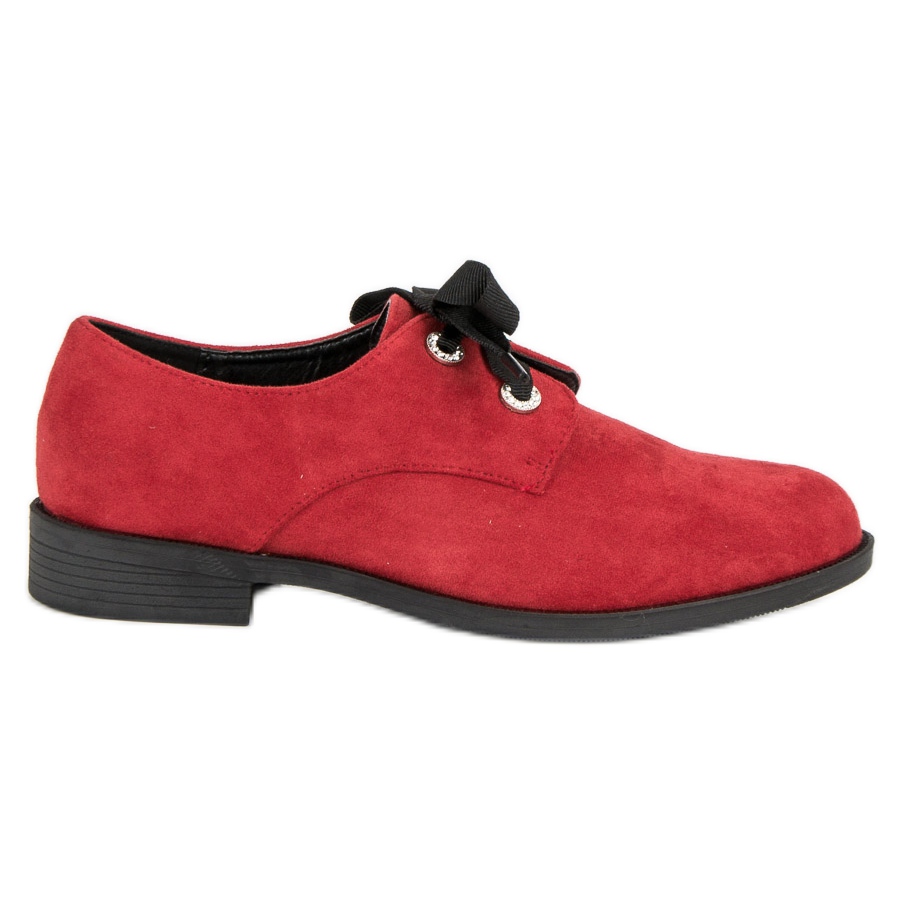 Évszaktól függetlenül, a piros velúr Bestelle cipők univerzálisak. A kerek orr és a klasszikus fűzős záródás eleganciát ad, a talp elegáns futófelülete pedig stabilitást és tapadást biztosít.