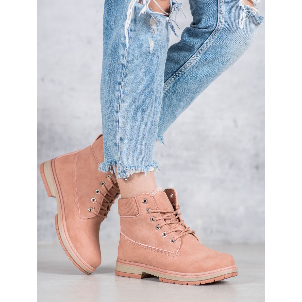 A kiváló minőségű ökológiai bőrből készült külső anyag a tartósságot, a futófelülettel ellátott szintetikus talp pedig megfelelő tapadást biztosít. Ezek a túrabakancsok kerek orrral rendelkeznek, ami nagyon praktikussá és kényelmessé teszi. A 3 cm-es sarokmagasság és a boka feletti felső rész a kényelmet és az elegáns megjelenést ötvözi.
