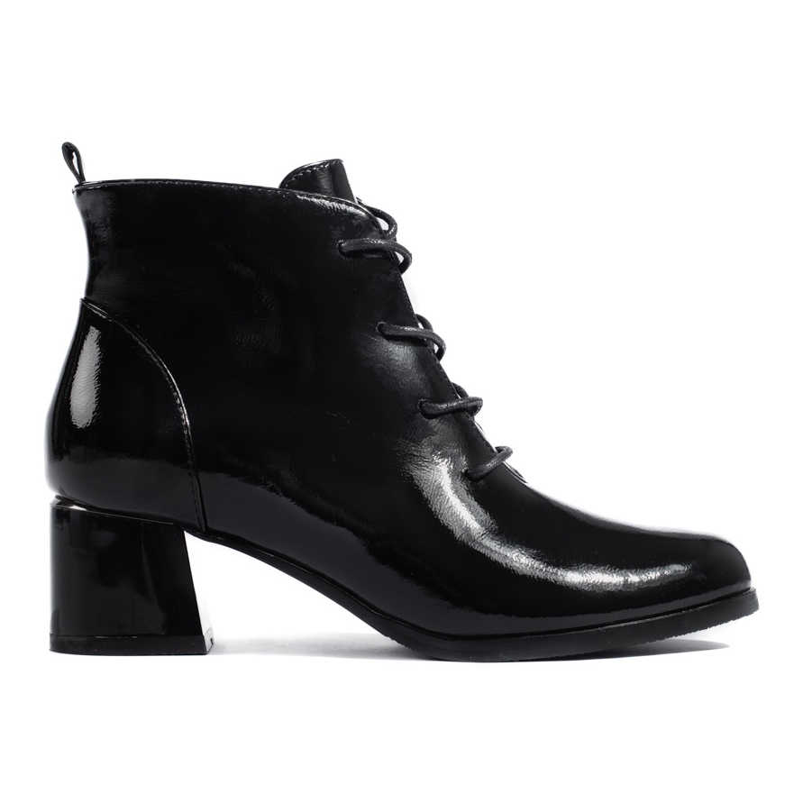 A W. Potocki női bokacsizma az elegancia és a kényelem kombinációja, tökéletes őszre és télre. A kiváló minőségű lakkbőrből készült fekete bokacsizma klasszikus, mégis modern dizájnjával hívja fel magára a figyelmet.