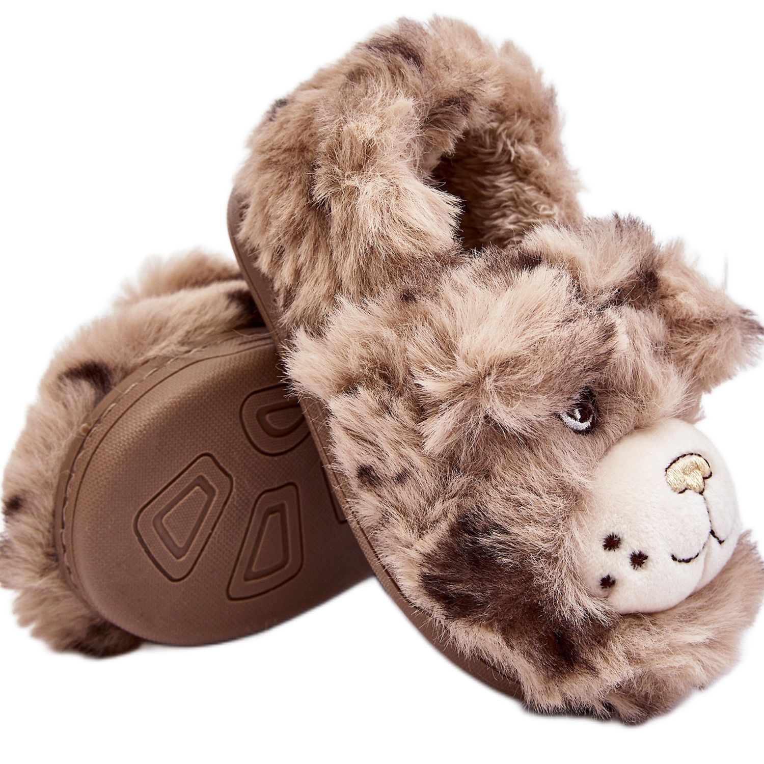 Részletek: Prémes gyerekpapucs mackóval, sötétbézs Apolanie