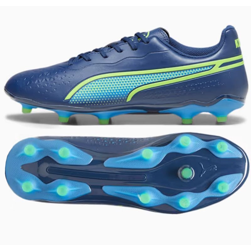 Puma King Match FG/AG 107570-02 Football cipő-férfi, kék, edző lankok, amelyek célja a labda és a kényelem irányítása a játék során.