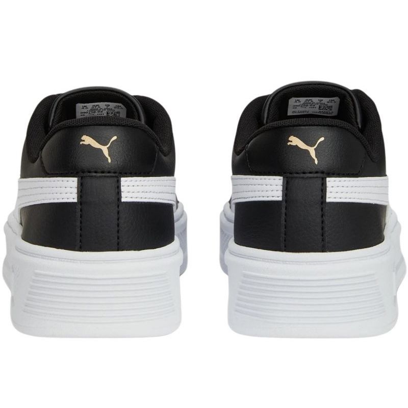 A Puma Smash Platform v3 W 390758 02 klasszikus fekete cipő ideális választás azoknak a nőknek, akik értékelik a sportos stílust egy kis városi eleganciával kombinálva. Ez a lábbelimodell megemelt gumitalpával hívja fel magára a figyelmet, aminek köszönhetően további centimétereket nyerünk, és karcsúbbnak tűnik az alakunk.