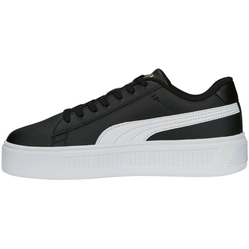 Az univerzális, de mindig divatos fekete szín a Puma Smash Platform v3 cipőket fantasztikus kiegészítőjévé teszi mind az alkalmi, mind a kifinomultabb kombinációknak. A csipkezárás gondoskodik arról, hogy a lábbeli a felhasználó egyéni igényeihez igazodjon, a kerek orr pedig megfelelő teret biztosít a lábujjaknak.