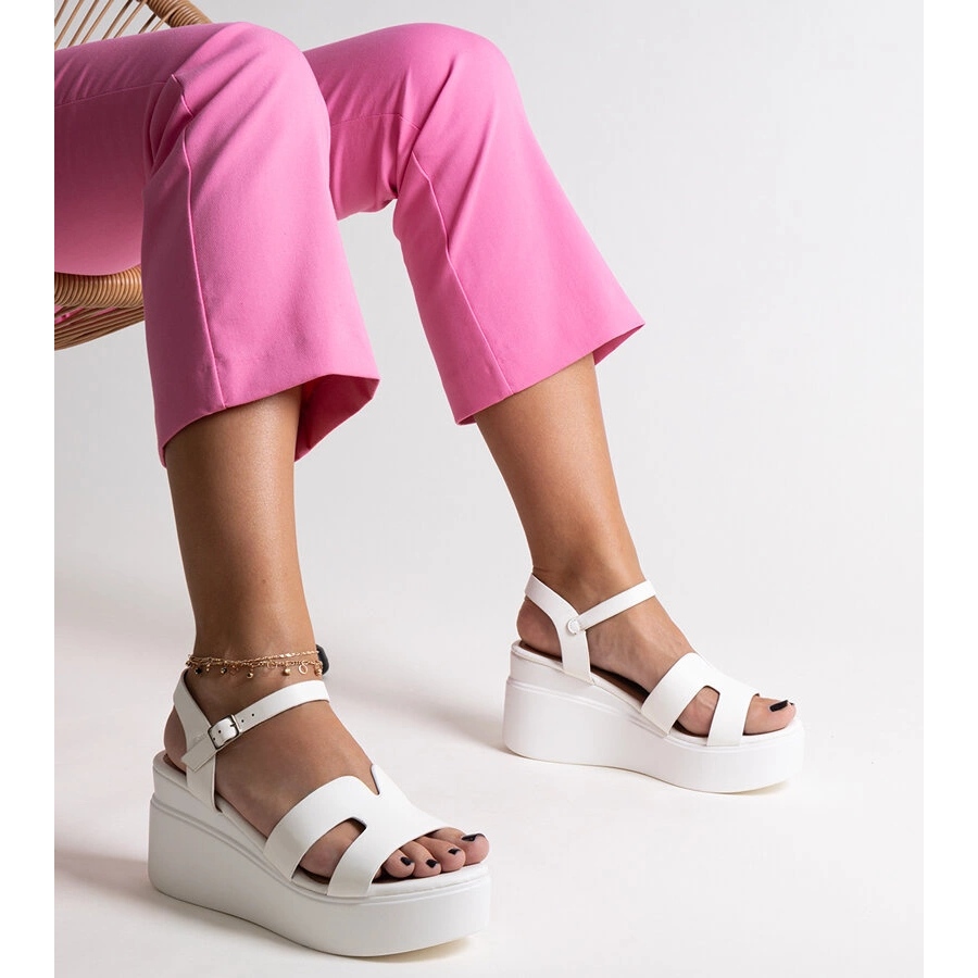 A Reema szandálok 7,5 centiméteres ékkel rendelkeznek, ami séta közben biztosítja a kényelmet, és ugyanakkor optikailag meghosszabbítja a lábakat. Az orr és a csatrögzítő hiánya garantálja a könnyű vásárlást és a lábhoz való illeszkedést. Fehérben tökéletesen illeszkednek a nyári trendekbe, lehetővé téve, hogy szabadon kombinálhassa a különféle stílusokat.