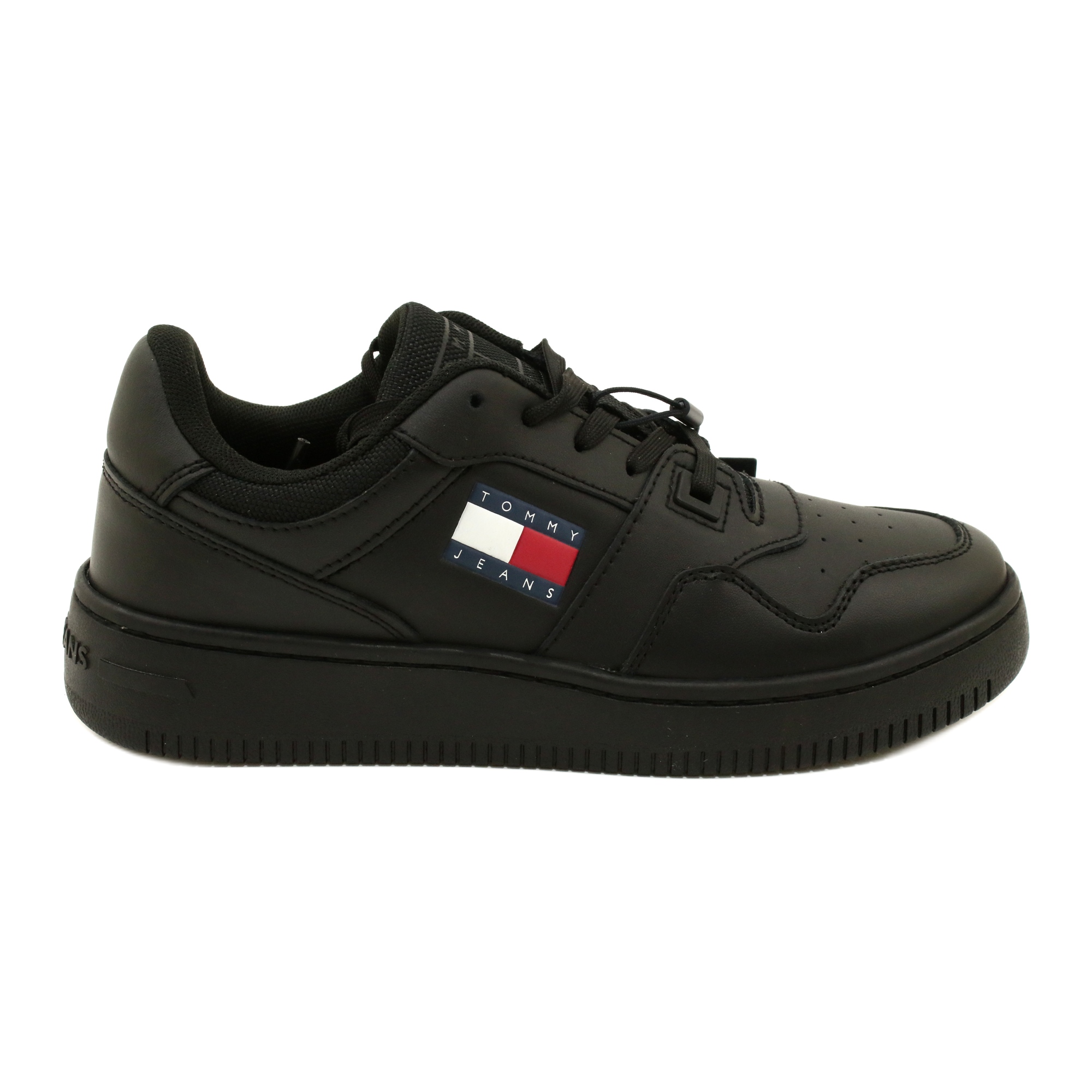 A Tommy Hilfiger retro kosár -esszi sportcipője ideális javaslat azoknak a nőknek, akik értékelik a stílus és a kényelem kombinációját a mindennapi tevékenységekben. A klasszikus fekete színű modell tökéletesen megy a különféle stilizációkkal, így ez a ruházat univerzális elemévé válik.