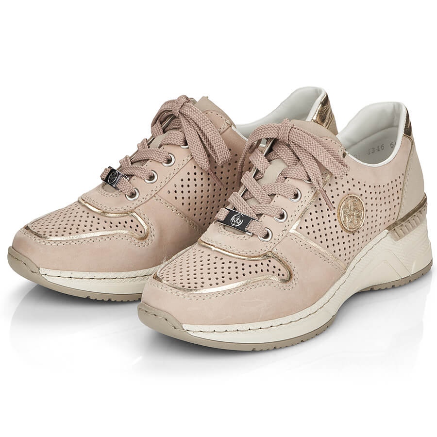Részletek: Rieker N4346-60 női bézs áttört ék alakú sportcipő