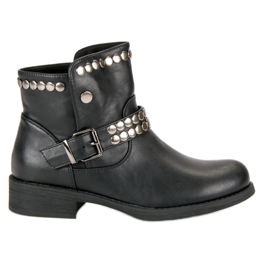 Stílusos és kényelmes fekete rock csizma L. Lux-tól. A cipő tökéletes választás minden nő számára, aki karaktert szeretne adni mindennapi stílusának. Kiváló minőségű ökológiai bőrből készült, ez a bokacsizma tökéletesen ötvözi a divatos megjelenést a viselési kényelemmel.