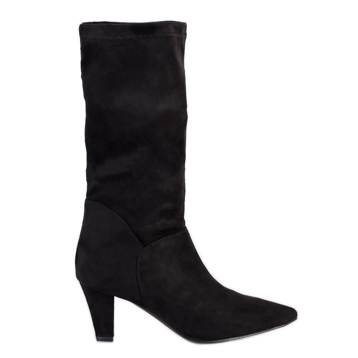 Fedezze fel az eleganciát és a kényelmet a Super Mode rövid velúr csizmáival. Ez a stílusos fekete csizma tökéletes választás egy modern nő számára, aki értékeli a sokoldalúságot és a minőséget. A klasszikus és minimalista dizájn alkalmassá teszi mind mindennapi használatra, mind különleges alkalmakra, például bulikra vagy ünnepekre.