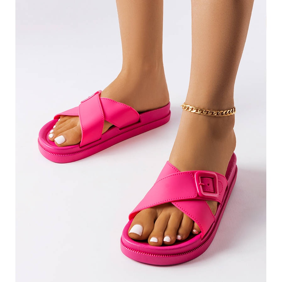 A Pauline modell tetszetős csattal van felszerelve, ami nem csak praktikus elem, hanem esztétikai hangsúly is. Ezek a fukszia árnyalatú papucsok szemet gyönyörködtetőek és elég univerzálisak ahhoz, hogy a nyári stílusok széles skálájához illeszkedjenek, a strandruháktól a városi rövidnadrágokig.