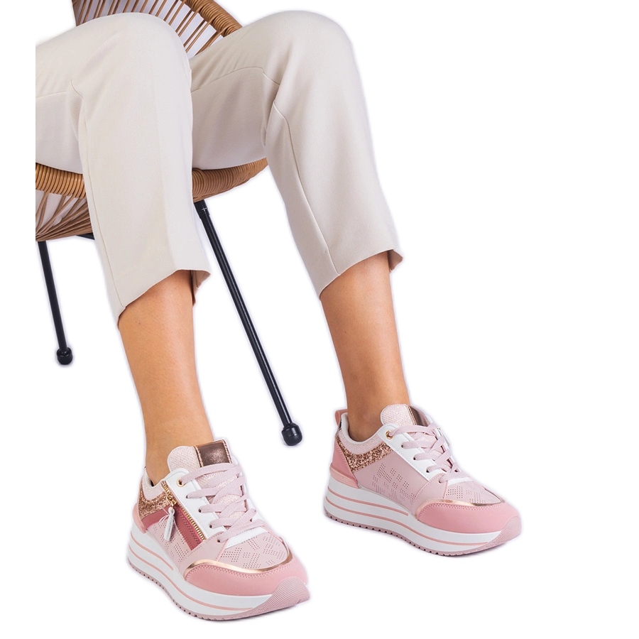 Inna marka Rózsaszín sport cipők a platformon csillogással díszítve