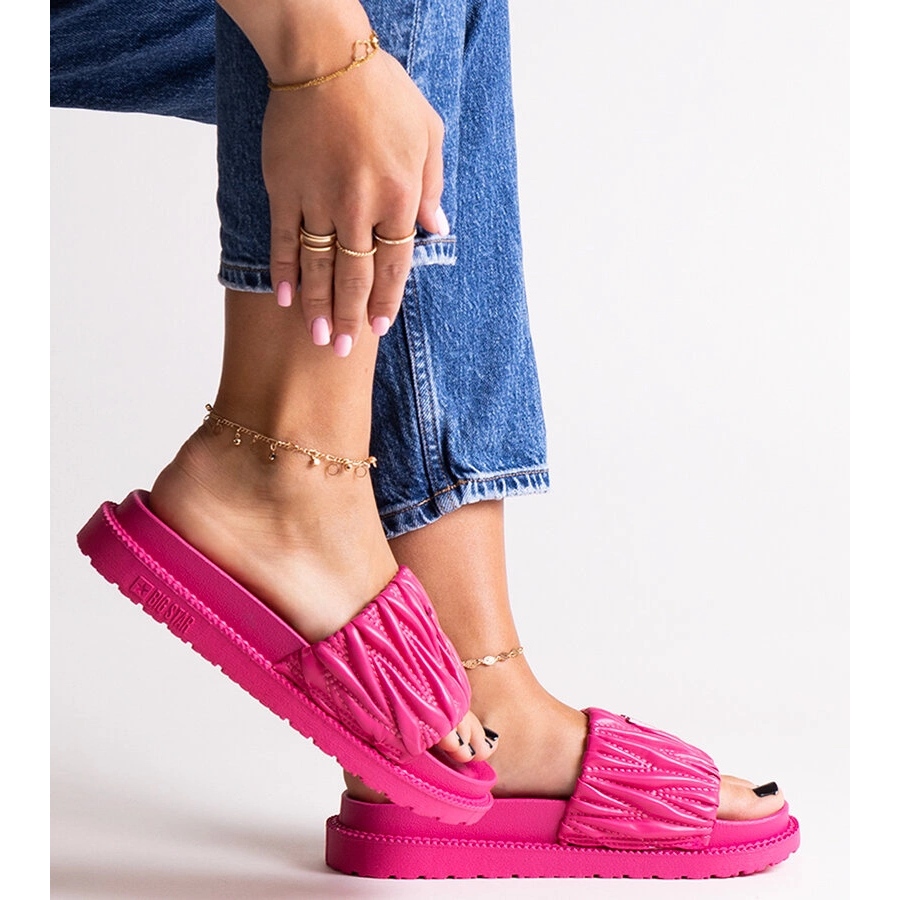 A rózsaszín flip -flopok, amelyek barnító nagy csillaggal, NN274A749, tökéletes választás a nyári napokhoz, amikor a kényelem divatos dizájnnal találkozik. Rugalmas gumiból készültek, ezek a flip flopok garantálják a tökéletesen illeszkedő és kényelmes viselet kényelmét, ami minden nyári szekrényben kötelezővé teszi őket. Intenzív fukszia árnyalatuk megragadja a szemét, és világossá teszi a stilizációkat.