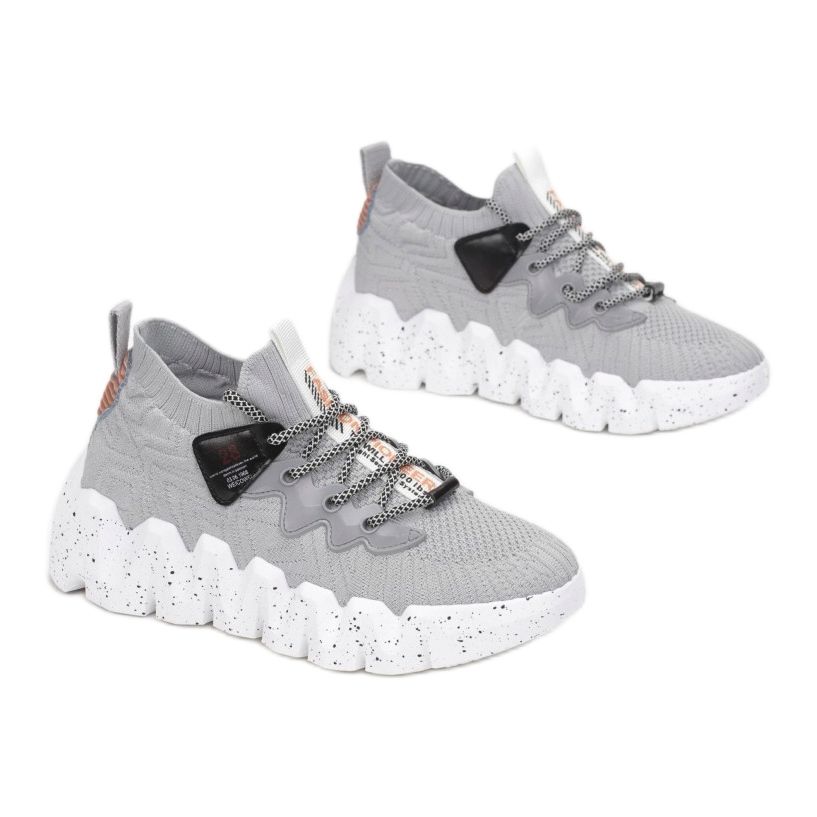 A Vices FF-21-39 szürke színű cipők tökéletes választás a kényelmet és a modern dizájnt értékelő nők számára. A rugalmas felsőrész díszes textúrákkal díszített, ami egyedi karaktert kölcsönöz nekik. Ezek a bebújós cipők dekoratív kerek fűzőkkel vannak felszerelve, oldaluk pedig különféle, érdekes szerkezetű foltokkal hívja fel magára a figyelmet. További látványosság a sarkon és a lábközépen lévő szalag, amely kiegészíti az egészet.