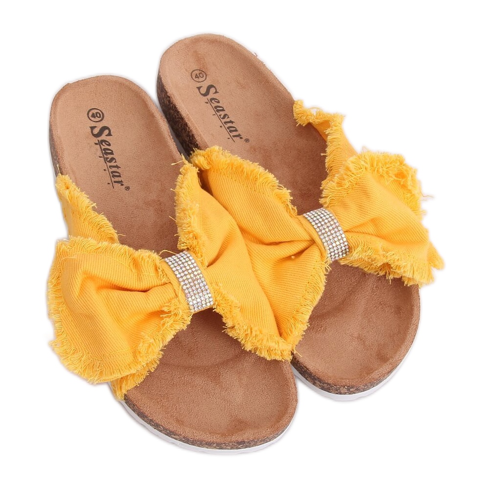Inna marka Sárga BG60P Sárga vászon papucs parafával