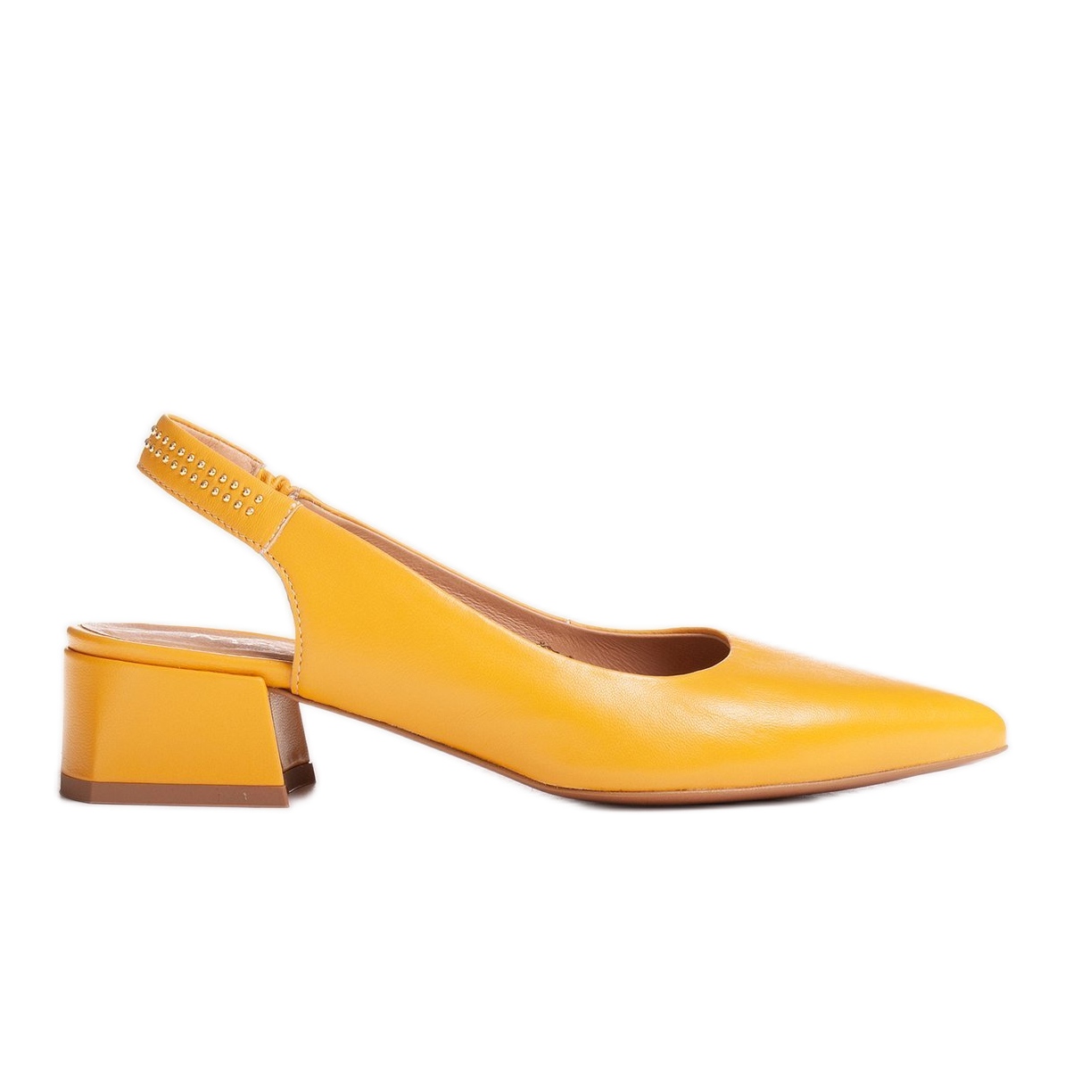 Részletek: Marco Shoes Sárga bőr szandál dekoratív fúvókákkal