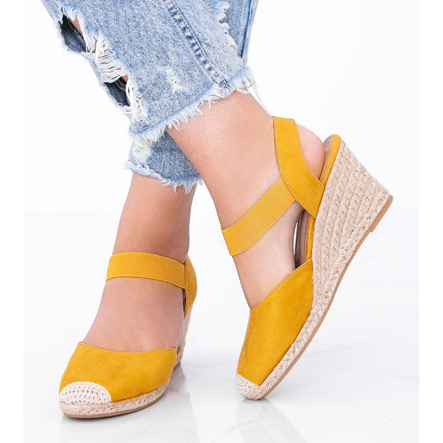 Készüljön fel a nyári kalandokra elegáns sárga Louise espadrillákban, ékekkel! Ezek az egyedi cipők abszolút slágerek ebben a szezonban, és minden ruhát ragyogóvá varázsolnak. A kiváló minőségű velúr ökológiai bőrből készült espadrillák nem csak megjelenésükkel, de viselési kényelmével is örömet okoznak.
